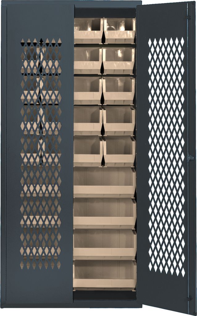 Specialty Bin Cabinet Ivory 36In^ Specialty Bin Cabinet, With Ivory Bins, Louvered Back Wall Fitting, Mesh Security Doors For High Visibility, With 2 Different Sized Bin Compartments And 3 Point Locking Handle, With 2 Keys, And 14In Gauge Cabinet, No. Of Bins: 20 8, Outer Dimension: 36 X 18 X 78I