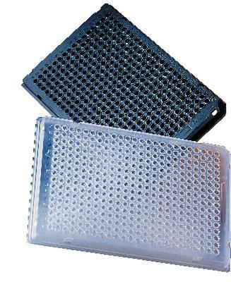 Thermowell* GOLD 384-Well Polypropylene PCR Plates^ Clear, Nonsterile, conical-bottom. Molding process free from lubricants, dyes, heavy metals or fillers. Uniform wall thinness. DNase- and RNase-free; endotoxin-safe. Well volume: 55uL