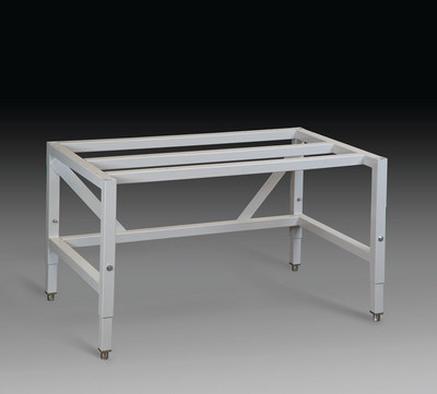 Telescoping Base Stand w/ fixed leveling feet to support 3Feet Purifier Horizontal Clean Bench 8feet^ Telescoping legs adjust to 8 heights in 1Inch increments from 27.5 to 34.5Inch. 1.75Inch tubular, powder-coated steel frame. Support loads up to 1000 lbs.
