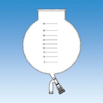 6534 Flask, Reaction, Spherical, With Bottom Outlet^ 3L Spherical Flask, 4" Grooved Flange, Bottom Outlet With 0-8 Opening With A 28/15 O-Ring Ball Joint Connection.