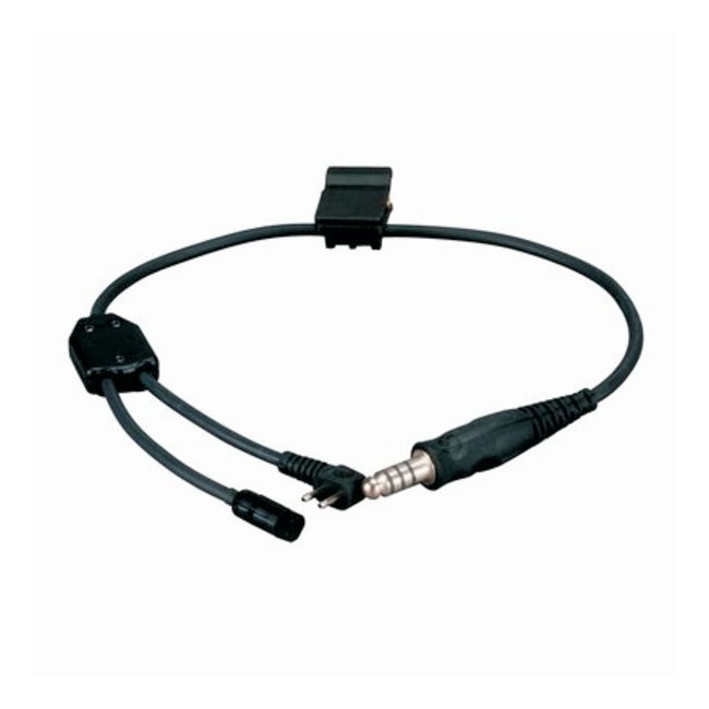 Y-Harness for mounting a boom microphone to the right earcup and enabling connection to a PTT adapter for two-way radio communicatio