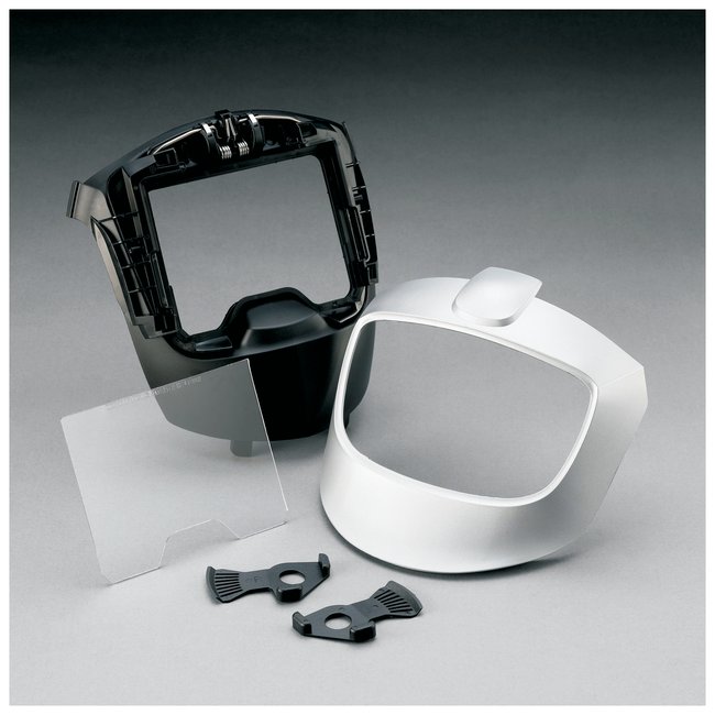 Replacement kit includes front panel, welding filter holder, middle helmet panel, protection plate, and L and R (left and right) S stops. For 3M™ Speedglas™ FlexView System.