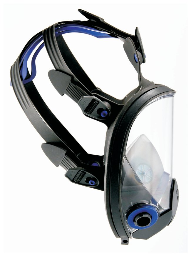 Rugged facepiece equipped with a large Scotchgard™ coated lens is designed to provide flexibility in extreme environments.