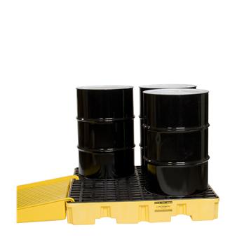 Specifications EAGLE Spill Platforms & Pallets are the most flexible and comprehensive spill protection, containment and storage products on the market today. Polyethylene construction for excellent chemical resistance and feature Eagle's patented removable poly grating for easier cleaning.Drum bogie is a mobile dispensing unit that protects against incidental spills and leaks. Durable polyethylene Bogie resists corrosion; has 5 swivel casters for maximum stability, load capacity and maneuverability. Features a poly push-pull handle.Thomas No.CapacityDimensionsWeight1216R1666 gal.51.5 " x 51.5 " x 8 "67 lbs.1216R1730 gal.51.5 " x 26.25 " x 6.5 "32 lbs.1216R1812 gal.26 " x 26 " x 6.5 "16 lbs.1216R1934 gal.51.5 " x 26.25 " x 6.5 "20 lbs.1216R20n/a32 " x 45.5 " x 8 "32 lbs.1216R2130 gal./side51.5 " x 51.5 " x 6.5 "65 lbs.1216R2266 gal.103.5 " x 26.25 " x 6.5 "64 lbs.1216R2366 gal.51 " x 26.25 " x 13.75 "48 lbs.1216R2412 gal.35.75 " x 42 "30 lbs.