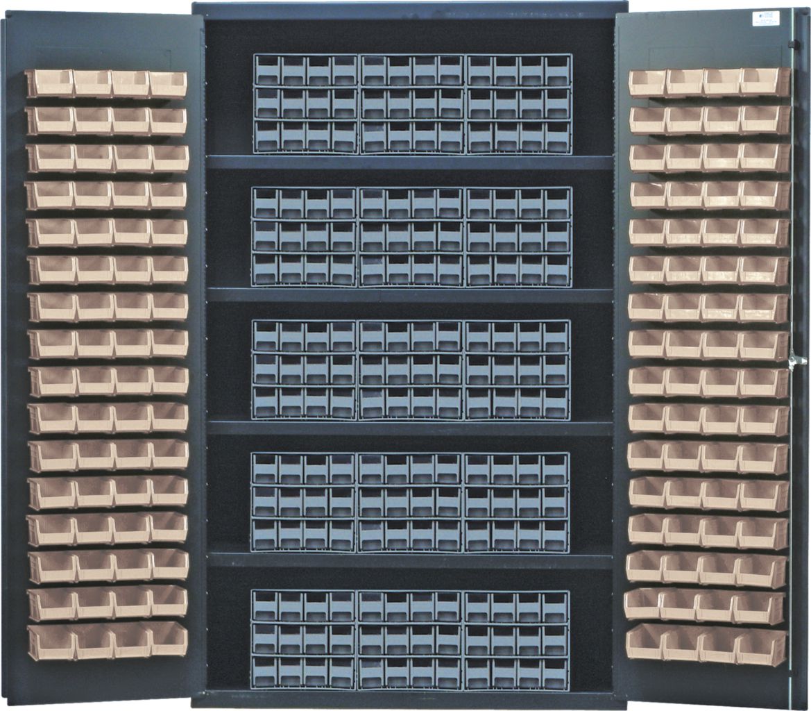 Storage Cabinet Ivory 48In^ Storage Cabinet, Ivory Colour Bins, Features 15 Interlocking Drawer, Cabinet Exterior Is Gray In Color, Security Storage For Industrial Parts And Spares, With 3 Point Locking Handle, Supplied With 2 Keys, No. Of Bins: 128, No. Of Drawers: 180, Outer Dimension: 24X48X78I