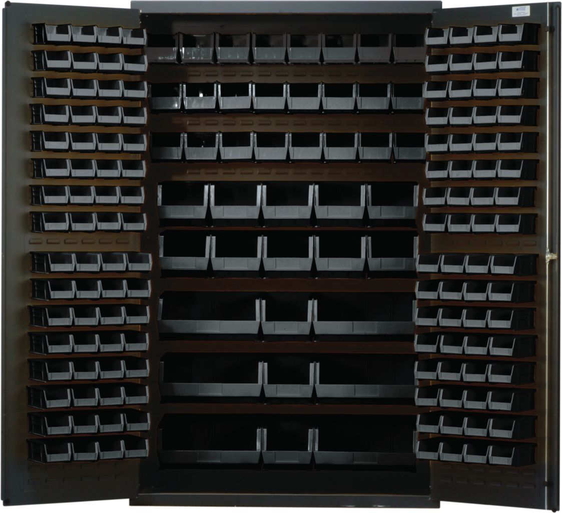 Bin Cabinet All-Welded With Black Bin 48In^ Bin Cabinet All-Welded With Black Bin, Made From 14In Gauge All-Welded Steel For Added Strength, Provides Security For Stored Contents With Three Point Locking Handle And Keys, With Gray Baked Enamel Finish, No. Bins: 171, Outer Dimension: 48 X 24 X 78I