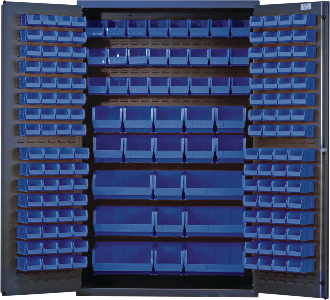 48IN LOCKING STEEL CABINET W/ BLUE BINS ,Each