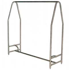 Floor-Mounted Gowning Rack^ Made of 16-gauge, type 304 stainless steel. Tubular design for easy assembly and laminar flow. 5.1cm increments on hanger bar. Cross-bracing enhances rigidity. Has 2.5cm adjustable plastic bullet feet and 12 closed-loop stainless steel hangers. 61cm wide. 121.9Lx188Hcm.