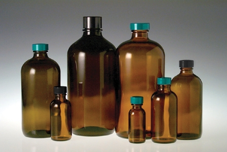 4oz (120ml) Amber Boston Round with 22-400 Green Thermoset F217 & PTFE Lined Cap attached,Case of 128