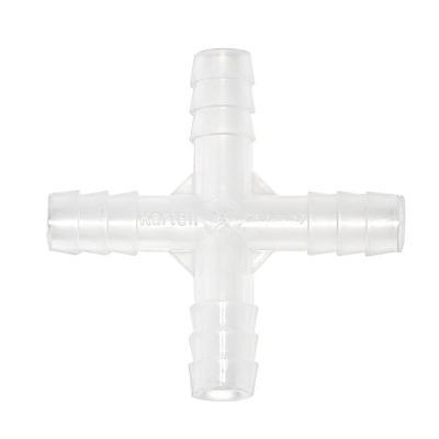 4-Way Tubing Connectors^ Fits tubing with I.D. of 1/4 - 5/16in. Excellent chemical resistance. Autoclavable polypropylene. Serrated connecting surfaces to prevent tubing slipping. Withstands flows to 20 p.s.i. &am