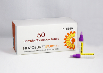 Sample Collection Tube ^ Sample Collection Tube, for Immunological Fecal Occult Blood Tests, employ a unique combination of monoclonal and polyclonal antibodies to detect only human blood in stool, greatly improved specificity, sensitivity, accuracy and cost-effectiveness, 50 tubes