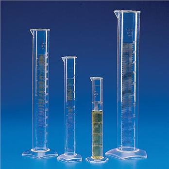 Graduated Measuring CylindersCrystal clear polymethylpentene (PMP)Molded graduations - mLWide opening with a tapered pour spoutShatter resistant and chemically resistant to most acids, bases and common solventsWithstands temperatures up to 170°CAutoclavable at 121°C for 20 minutesThese cylinders are ideal for safe and accurate measuring of all types of liquids. They offer a wide tim with tapered pour spout for easy pouring anf filling. The non-wetting interior surface eliminates concave menisci, providing more accurate measurements. The wide pentagonal base provides added stability and keeps the cylinder from rolling. Can withstand repeated autoclaving. Reduce breakage and personal injury versus comparable glass cylinders.