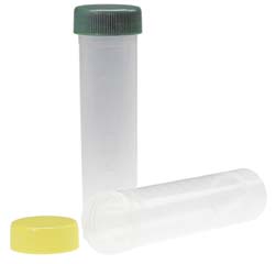 Nonsterile Sample Tubes, 50 mL^ Polypropylene, conical bottom tubes with self-standing bases. Graduated from 10 to 50mL in 5mL increments. Chemical-resistant and shatterproof. Supplied with yellow leakproof screw caps. Temperature range: -90 to 121[degree]C. Dimensions: 30dia.x115Lmm.