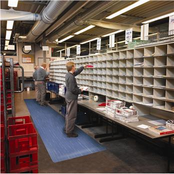 Durable smooth marble-pattern top surface of heavy-duty vinyl; easy to sweep or mop clean; sloped beveled edges to reduce tripping hazards and allow easy access on and off the mat. Overall thickness: 1 "