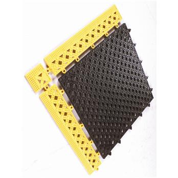 With its open grid diamond pattern, Modular Lok-Tyle™ allows moisture and debris to drain from the surface and aids traction. The modular cross-hatch PVC vinyl tiles snap together on-site for custom configurations. Its light-weight, modular design allows for additional use as shelf liners in food prep and bar areas.