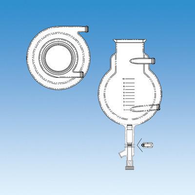 6536 Flask, Reaction, Spherical, Jacketed, With Bottom Outlet^ 5L Jacketed Spherical Flask, 6" Grooved Flange, Bottom 0-8 Opening With 28/15 O-Ring Ball Joint Connection.