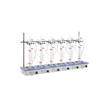 The Multi (Extraction) Mantle with six recesses has a built-in electronic controller and offers a choice of heater only (EME6) or heater/stirrer (EMEA6) combination models. They may be used with the FM110 Flow Monitor.The vented case's unique air flow ensures the case remains "cool-to-the-touch ".For both Heater EME6 and Heater/Stirrer EMEA6 modelsIndividual built-in solid state electronic controls enable easy regulation of heater, while removing sparking associated with mechanical switchingThree 12.7mm diameter support rods are includedRound bottom flask capacity from 100ml to 1000ml at all 6 positionsTop cover is polypropylene and external surfaces are powder coated giving good general chemical resistanceCoiled heating element is suspended within a thermal insulating cartridge to provide maximum heat transfer and supportEarth (ground) screen encloses the heater for added safetyIndividual heater cartridges are replaceableNeon lights indicate when power is on and supplied to heaters and, if applicable, supplied to stirrersAdditional Features for Heater/Stirrer EMEA6 modelsAllow the solution to be stirred and heated simultaneouslyProvide stirring speeds of between 50 to 1000rpmOne stirring control operates each set of three recesse