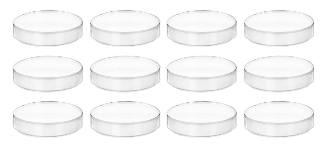 Pack of 12 petri dishes with lids made of high quality, translucent polypropylene plastic. Each dish measures 2.9" (75mm) in diameter and 0.5" (13mm) deep. Lids measure 3.1" (79mm) in diameter. Unbreakable, non-toxic, non-sterile, multifunctional and ready to use. Excellent for general laboratory applications, including cell culturing, plant germination, precipitate drying and solvent evaporation, home or classroom science experiments, crafting, small storage solutions and more. Petri dishes are reusable and simple to clean. Top rack dishwasher safe.