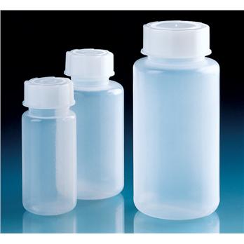 Wide Mouth LDPE Bottles with Screw CapsLow-density polyethylene bottles have polypropylene screw caps, and are suitable for storage of many acids, bases, aldehydes and alcohols. Wide mouth facilitates poured transfer into the bottle, or allows for easier removal of contents if storing granulates. Linerless caps have an internal sealing ring for a positive seal.