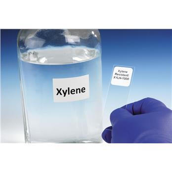Pre-cut, Peel-off Labels for Thermal Transfer PrintersXylene-Resistant - Polyester labels provide strong solvent resistance, specifically to multiple xylene washes as well as longer term exposure to xylene.Versatile - Temp. Range: -40°C to 121°C. Xylene labels resist boiling water baths, autoclaving and moderate freezer temperatures.Specially Designed - Rolls are specially top-coated to readily accept thermal transfer printing.Convenient - Labels are available in a microscope slide size as well as a unique general purpose size for multiple uses.100% Virgin Polypropylene tubes are recommended. Avoid use of siliconized surfaces.