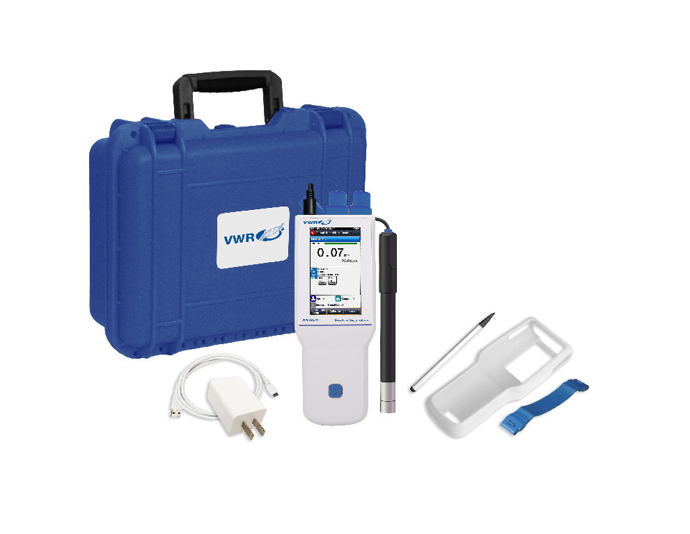 The VWR-DO901 meter provide accurate and reliable measurements of dissolved oxygen concentration and dissolved oxygen saturation with an optical DO electrode., The easy to use VWR-DO901 portable meters provide accurate dissolved oxygen measurements for accurate water quality testing. The intelligent operation system provides features including user management, calibration management, electrode management, method management, and many other advanced capabilities., 02_BulletPoint: High resolution color touch display (4.3") | Air-saturated water or zero oxygen calibration capabilities | IP 65 waterproof | Automatic or manual temperature compensation capabilities | Auto-read, timed-read, and continuous-read measurement options | Data capacity of 1000 sets for each parameter (GLP-compliant) | Rechargeable battery | Auto barometric pressure compensation, 11_Delivery: Electrode included. Meter also includes electrode holders (2), meter silicone rubber case, carrying case, touch screen pen and hand strap., 10_Ordering: For use with DO3 optical DO electrode. Three-year meter warranty. For application specific recommendations, please reference 'VWR® Electrode Selection Guide' located in the Related Information section., The VWR-DO901 meter provide accurate and reliable measurements of dissolved oxygen concentration and dissolved oxygen saturation with an optical DO electrode., The easy to use VWR-DO901 portable meters provide accurate dissolved oxygen measurements for accurate water quality testing. The intelligent operation system provides features including user management, calibration management, electrode management, method management, and many other advanced capabilities., 02_BulletPoint: High resolution color touch display (4.3") | Air-saturated water or zero oxygen calibration capabilities | IP 65 waterproof | Automatic or manual temperature compensation capabilities | Auto-read, timed-read, and continuous-read measurement options | Data capacity of 1000 sets for each parameter (GLP-compliant) | Rechargeable battery | Auto barometric pressure compensation, 11_Delivery: Electrode included. Meter also includes electrode holders (2), meter silicone rubber case, carrying case, touch screen pen and hand strap., 10_Ordering: For use with DO3 optical DO electrode. Three-year meter warranty. For application specific recommendations, please reference 'VWR® Electrode Selection Guide' located in the Related Information section., VWR-DO901 meter with DO3 optical DO electrode and zero oxygen calibration solution powder vial, Cat. No.: 77618-940