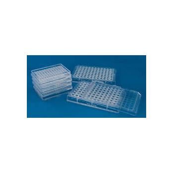 Specifications MicroWell Plates are used in a broad spectrum of applications, including cloning experiments, sample incubations, and in tissue culture based analytical systems. Our MicroWell Plates have excellent cell attachment. All styles are designed to be stackable and are radiation sterilized.µ 10µl Well PlatesThey are Terasaki format plates measuring 56x82mm and having 60 or 72 wells. Wells are shaped like inverted truncated cones, each with a working volume of 10µl. The well surface is Nunclon® treated for good cell attachment. Lids incorporate a stacking feature and are tight-fitting, which reduces evaporation.µ 96 Well PlatesThese plates measure 86x128mm and come in either flat or round bottom wells. Vented lids allow for gas exchange and have condensation rings to control evaporation and retain condensate. Lids are keyed so they cannot be accidentally reversed. Plates have alpha-numeric markings on its two edges. In addition, flat bottom plates have individual well coordinates beside each well for easy well identification when using an inverted microscope. Plates also have raised well rims to provide proper attachment of adhesive sealing film.No. of WellsWell ShapeVol. WellCulture Area cm2Unit Per Sleeve/cs96Round0.3ml0.361/5096Flat0.4ml0.3281/5060Conical10µl0.01310/15072Conical10µl0.01310/150