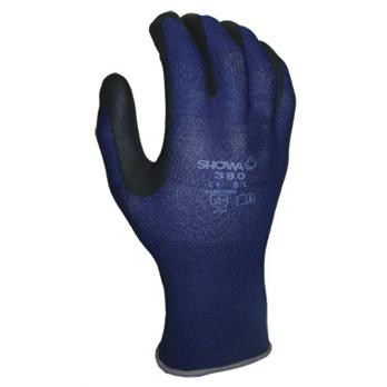 General purpose patented waffle pattern foamed nitrile-coated, palm dippedBlue w/black coating, 13 gauge seamless, knitted liner144 pair per case. 12 pair per pack