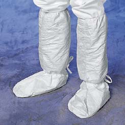Tyvek* Cleanroom Boot Covers^ Boot covers have adjustable ties and elastic tops. PVC bottoms provide durability and skid-resistance. Bound seam construction. Sterile.