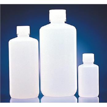 Specifications Leakproof, double-seal closureSpecial no-drip pour lipStandard thread finishesLDPENatural colorThe closure design incorporates a unique double-seal which has been leak-tested under stringent vacuum and pressure conditions and proven to remain tight over extended periods of time. Comparative tests performed with other containers confirm that Wheaton Double-Seal Closure is superior. The special pour lip facilitates safe dispensing and keeps your product from running down the outside of the container. Plastic bottles are manufactured with industry standard threads which allow them to be used with a variety of standard closures.Capacity, mLDiameter x Height, mm (w/o caps)Cap Size (Finish)416 x 3813-425825 x 4320-4101525 x 5620-4103032 x 6920-4106034 x 8420-41012550 x 10124-41025061 x 12924-41050072 x 17128-4101,00091 x 12038-430