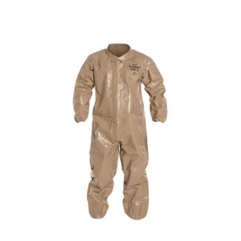 Tychem® 5000 fabric is composed of a multi-layer film barrier laminated to a durable 2.0 oz/yd2 polypropylene substrate. Tychem® 5000 fabric is strong and durable for rigorous activities and rugged situations involving liquid splash and provides barrier to a broad range of chemicals. Typical Applications: chemical handling, petro-chemical, hazardous materials/waste clean-up, fire departments, industrial hazmat teams, utilities, and domestic preparedness. Commonly used in domestic preparedness for situations where the potential to exposure to chemicals exist.Taped seams provide strong chemical resistance against heavy liquid splashes. A sewn seam is covered with a strip of compatible chemical-resistant material through heat sealing.Laydown collarStrong zipper for tough, flexible closureStorm flap covers zipper which can be sealed by the wearer with adhesive strip to prevent intrusion at zipperElastic opening for tighter fit at wristElastic opening for tighter fit at ankle
