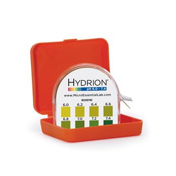 This short-range Hydrion MicroFine pH Paper measures pH solutions in the slightly acid, neutral, and slightly alkaline range of 6.0-7.4 and offers clear bright single color matches at every .2 to .3 interval. Hydrion MicroFine pH Papers are ideally suited to testing minute amounts of solution, only requiring 0.0001ml.for an accurate measurement. With a width of 5/32 " ", Microfine pH Paper also fit easily into small tubes.The color chart has pH matches at [6.0][6.2][6.4][6.6][6.8][7.0][7.2][7.4]Each carton contains 10 kits, each consisting of two(2) 15-foot rolls of ph paper, packed in a protective Hydrion dispenser with matching color chart, and a polypropylene case.Product DirectionsSimply tear off a small strip of pH paper, dip into the test solution, then instantly compare the resulting color with the matching pH color chart.