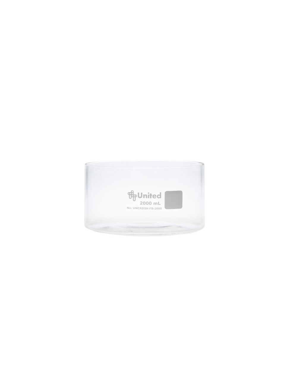 Designed for repeated laboratory use, United Scientificâ„¢ CrystalClearâ„¢ crystallizing dishes are made from industrial grade borosilicate 3.3 glass. Dishes are autoclavable, with excellent chemical resistance, a low temperature gradient, and can withstand high temperatures and thermal shocks. Reinforced beaded rims are fire-polished to reduce chipping. Include printed marking spots.
