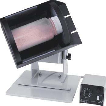 Thorough mixing actionVariable speed controlSpeed range of 2-80 rpmDry Powder Rotator has the drive bar set at a 20° angle so the motion of the rotator closely reproduces the mixing action achieved when mixing by hand, making it useful for working with hard-to-mix powders. Not only is the powder tossed from end-to-end, it is rotated around the inside of the vessel to produce a more thorough mixing action than reciprocal shakers.Unit features an adjustable rack that fits bottles from 7” to 10” in height and up to 7” in diameter.It has variable speed control, a DC filtered motor for smooth operation and its tilting motor bracket allows for variations of mixing action.Speed range is 2 to 80 rpm and load capacity is 10 lbs.