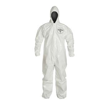 DuPont™ Tychem® SL Coverall. Standard Fit Hood. Elastic Wrists and Ankles. Storm Flap with Adhesive Closure. Taped Seams. White. 5X, Case of 6
