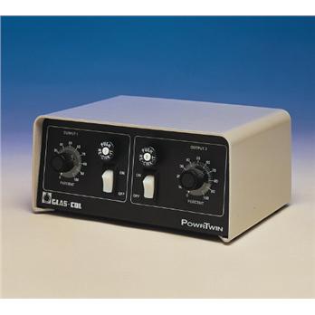 Controls two separate circuits independentlyProvides precise manual control of heating mantles, tapes, cords and other resistive loadsAdjustable output range from 3-100% of rated voltageUse on bench top or mount to lattice work using clamp provided on back panelWill accommodate a non-conductive load to 840 watts per circuit. Electrical specifications: circuit breaker protection, 3-wire load receptacle, 3-wire line cord with molded plug. Lab bench case: low-profile cabinet. Dimensions: 8” W x 6” D x 3 3/8” H. Foxtip gray and charcoal finish .
