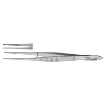 Surgical grade and Service gradeMiltex brand forceps are hand crafted to the most exacting standards. We offer two grades which vary by manufacturing quality control. Miltex surgical grade instruments are made from the highest quality steel forgings and subjected to the most rigerous quality control inspections. General service grade are manufactured from high grade stainless steel and finished to a less critical standard. Both grades carry a lifetime guarantee.Eye Dressing ForcepsStainless steel with serrated tipsLength: 102 mmHighest quality fit and finishRuskin Bone ForcepsBone cutting forceps6 in. length, straight designDressing Forceps with Curved PointsStainless steel with fine, curved serrated pointsLength: 127 mmSplinter ForcepsStainless steel with fine serrated tipsGraefe Fixation Sterilization ForcepsStainless steel; length 110 mmStandard jaws are 4.5mm wide and have fine teeth