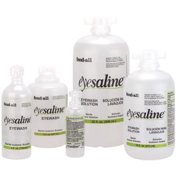 Extended flow nozzlesSterile solutionTamper-resistant topsPersonal eyewash products contain Eyesaline, a preserved, buffered, sterile saline solution. Products have no seals to remove, no leaking caps. These secondary personal eyewash devices are intended to supplement, not replace, primary eyewash units. Personal products may also be used for critical irrigation when moving an injured person from a primary eyewash unit to medical care.Twist-off tabs make devices tamper-resistant yet still easy to use in an emergency. Absence of tab indicates prior use or tampering. Extended flow nozzles provide longer flow than conventional 16 and 32 oz containers. User controls volume delivery in 1, 4 and 8 oz products, in drops or an irrigating stream of solution, depending on pressure applied to the bottle.Quality assured manufacturing process uses FDA grade polyethylene bottles featuring lot numbers and expiration dates.