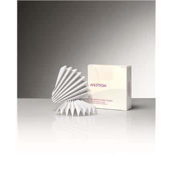 Additional Info Ahlstrom offers a full range of standard pleated grades that meet your needs from grades with rapid flow rates for filtration of viscous materials to grades with tight matrices for removal of fine precipitates. Ahlstrom’s pre-pleated grades can save valuable time and maximize the efficiency of the laboratory filter system. Pleating improves the effective surface area increasing flow rate and loading capacity thus decreasing filtration time. Pleated circles are available in 12.5cm to 50cm diameters.Qualitative analysisLow ash content 0.06%UntreatedConsistent performanceWet-strengthened grades availableCustom designed for end-use applicationCustom cutBulk packagingAhlstrom Grade 515 TDS