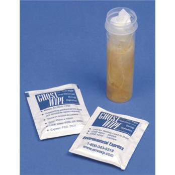 All GhostWipes are approved by AIHA. This revolutionary product eases sample preparation and analysis of surface lead or surface dust. The GhostWipe is a sturdy wiping material that holds together even on the roughest wiping surfaces. At the lab the Ghost Wipe readily and completely dissolves during the digestion process, providing more complete dispersion of analytes and more uniform recoveries. In addition, there is no messy fibrous material in the sample to clog the sample uptake capillary or nebulizer. GhostWipes meet all ASTM Designation E1792-96E specifications for sampling materials for lead in surface dust. Wipes are 15cm x 15cm, pre-moistened with deionized water and come in individually sealed packets. GhostWipes have been used successfully on alternative elements such as Ba, Be, Cr, Cu, Se, Zn and As.