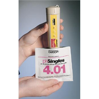 Choose from economical solution bottles or individually sealed pH buffer pouches.NIST traceable materialsLabeled with pH vs. temperature tables for accurate calibrationAll Oakton pH buffer solutions are freshness dated, and standardized against NIST-traceable references to ensure quality. ±0.01 pH at 25°C.Shelf Life: If unopened, shelf life is 2 years; once opened, use pH 4 and pH 7 within 90 days, pH 10 within 30 days. Store buffers away from direct sunlightOakton pH Buffer Solution Bottles are labeled with the name and CAS number for all ingredients (for "Right-to-Know " requirements), and are supplied with an MSDS.Oakton Pouches are convenient, air-tight pouches with high-precision calibration standards. Ideal for field use- take them to your test site for on-the-spot calibration. Each box contains twenty 20mL pouches.