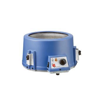 Specifications Unique Electrothermal replaceable heating element/cartridgeHeating mantle and controller in one unitPolypropylene housingThe EM Series Electromantle incorporates the proven electrothermal coiled, flexible heating element in special insulation and features a “power on” indicator light.The flexible heating element is suspended within a thermal insulated “former” to provide maximum heat transfer with minimum risk of flask breakage. The element is supplied as a complete cartridge for quick and simple replacement and has a maximum temperature of 450°C. The insulating former also ensures a safe, low outer case temperature. This design keeps the heat inside for safety and efficiency. Outer housing is constructed of chemical resistant and resilient polypropylene material.Features include a built-in energy regulator with an arbitrary scale, “heater on” indicator light and an internal fuse. All units are available in eight flask capacities from 50 mL to 5,000 mL. The 5,000 mL mantles have two heating circuits with switching for the upper circuit.The grounded model incorporates the safety (ground) screen. This pre-formed, stainless steel screen is fitted above the heating element and grounded directly to the supply cable, providing additional protection from spills or broken flasks. All mantles other than the 2,000 mL and 5,000 mL have a single support rod clamp that accepts 12.7 mm ( 1/2”) diameter support rods (not included). The 2,000 mL and 5,000 mL use three clamps.Thomas No.Capacity (mL )Electrical (50/60 Hz)Dimensions (mm)Weight (lbs.)5907D0550110 V, 60 W260 x 175 x 1273.15907D0750220 V, 60 W260 x 175 x 1273.15907D10100110 V, 60 W260 x 175 x 1273.15907D12100220 V, 60 W260 x 175 x 1273.15907D15250110 V, 60 W260 x 175 x 1273.15907D17100220 V, ,60 W260 x 175 x 1273.15907D20500110 V, 200 W310 x 238 x 1454.05907D22500220 V, 200 W310 x 238 x 1454.05907D251,000110 V, 300 W310 x 238 x 1454.25907D271000220 V, 300 W310 x 238 x 1454.25907D302,000110 V, 300 W400 x 350 x 1908.45907D322000220 V, 300 W400 x 350 x 1908.45907D353,000110 V, 300 W400 x 350 x 1908.45907D373000220 V, 300 W400 x 350 x 1908.45907D405,000110 V, 300/500 W400 x 350 x 1908.45907D425000220 V, 300/500 W400 x 350 x 1908.4l