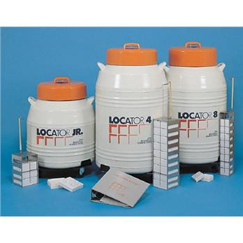 Retrieve cell samples quickly and easily using Thermo Scientific™ Locator™ Cryogenic Rack and Box Systems, which feature a unique hanging rack and gridded box design, advanced vacuum insulation, unmatched temperature uniformity and an innovative liquid nitrogen monitor.Features:Compact design minimizes space requirements while maximizing storage capacitySystem is suited for both manual and computerized inventory record-keeping methodsSuper-insulated vessels have special, narrow-mouth design that conserves liquid nitrogen by minimizing evaporationSamples are stored below -180°C, even when less than 2″ (5cm) of liquid nitrogen remains in the vesselUltrasonic Level Monitor safeguards irreplaceable samples with minimal liquid nitrogen evaporation and conductionAdvanced vacuum insulation minimizes liquid nitrogen evaporation and reduces operating costsOptional monitor provides continuous LED readout of liquid nitrogen level; activates visual and audible alarms when level falls below safe range of approximately 1″ (2.5cm)Optional alarm also alerts operator in the event of excessive liquid nitrogen lossSecure locking hasp prevents unauthorized entryLocator Jr.:Static holding time: 70 days1600 (100/box)Evaporation rate: 0.85L/dayLocator 4:Static holding time: 112 days3600 (100/box)Evaporation rate: 0.99L/dayIncludes: Stainless steel indexed racks that fit into corresponding locations in the vessel. Each rack has individual storage compartments that hold one Thermo Scientific™ Nalgene™ Cryogenic Storage Box.Requires: Nalgene Cryogenic Storage Boxes (order separately). Each box has individually numbered storage areas for use with vials sized 2.0mL and smaller.