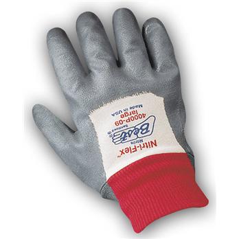 General purpose nitrile palm-coatedWhite w/gray dip, knit wrist w/ interlock liner72 pair per case. 12 pair per pack