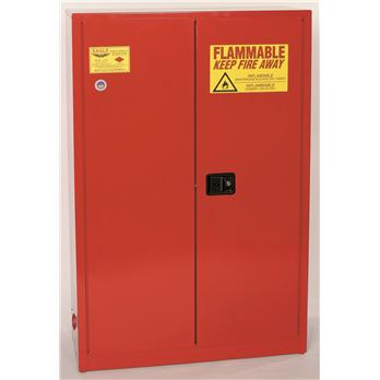 Specifications Reinforced double wall construction with 1-1/2 " air space on sides, top, bottom, back and doorsLead-free high gloss baked-on powder finishContinuous piano hingeGround connection2 " vent with fire baffle and cap4 adjustable galvanized leveling legs2 " raised leakproof sill4-3/4 " centers for shelf bracketsTri-lingual warning labelsThree point key lock with button latchesSelf latching doors4-3/4 " centers for shelf bracketsAdditional shelves for storage of 1-gallon paint or ink cans or for aerosol cansCapacity is based upon the number of 1-gallon paint cansCapacity (gal)40 gal60 gal96 galCommon NameStandard 40Standard 60Standard 96Outside Dimensions (in.)43 W 18 D 44 H43 W 18 D 65 H31-1/4 W 31-1/4 D 65 HInside Dimensions (in.)40 W 15 D 41 H40 W 15 D 62 H28-1/4 W 28-1/4 D 62 HNo. of Shelves355Shelf Depth (in.)14-3/414-3/428Maximum Weight253 lbs.351 lbs.374 lbs.ComplianceOSHA/NFPA Code 30OSHA/NFPA Code 30OSHA/NFPA Code 30