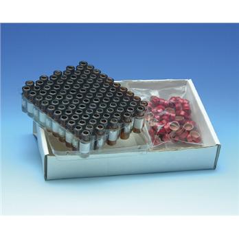 11 mm crimp finish12 x 32 mmWith or without patchColor coded aluminum sealsE-Z Vials and 11 mm Aluminum Seals are available assembled together in convenience packs of 100. These amber vials are made of Type 1 borosilicate glass. The aluminum seals are available in four colors: Natural, Red, Blue and Green.