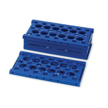 Close flat for compact storage! Pop up for quick use!Simple, easy action to open and close – expand and collapse when racks are needed. Designed to help organize 15 and 50mL tubes. Imprinted grid aids quick retrieval. Stack racks in open or closed position. Saves space when racks are not in use! Robust polypropylene construction. Not recommended for cleaning in autoclave. Measures 255 x 137 x 72 mm when expanded, 21mm H when collapsed.