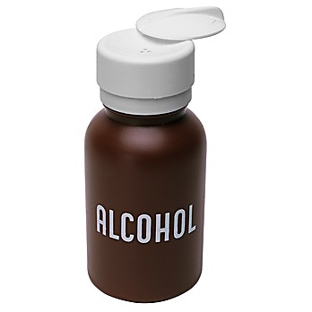Opaque brown High density polyethylene bottle protects light sensitive fluidsLasting-touch pump allows for quick one-handed dispensing - perfect for alcohol dispensing in working environmentsWide neck opening with “Swing lid” - easy to fill, easily closes, reduces odors, and maintains purityImprinted with 'Alcohol' for a long lasting and durable label