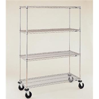 Similar to 8870J70 Series but with castersPost height is 63”; overall height is 69”The four shelves are adjustable on one inch centers. Each shelving cart has four resilient rubber swivel casters; two with brakes. Capacity is 600 lbs. per cart.