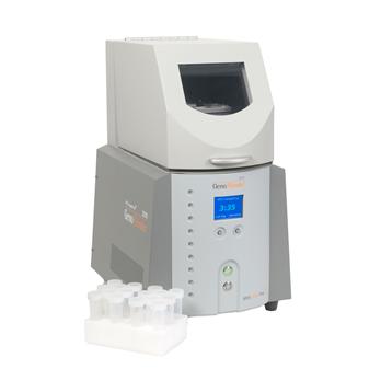 Additional Info The Geno/Grinder® is an automated high-throughput plant & animal tissue homogenizer and cell lyser. It is equipped with an adjustable clamp that accommodates a full range of sample vials from 2mL to 50mL centrifuge tubes or up to six deep-well titer plates. It is specifically designed for rapid cell disruption, cell lysis and tissue homogenization through bead beating. This enables fast and efficient extraction of nucleic acids, proteins and other molecules. The new model Geno/Grinder incorporates a password protected, touch screen control panel, enabling the user to program run time, rate, cycles and pause time.A full range of Kryotech® accessories are available to preserve temperature sensitive samples such as proteins and RNA. The Geno/Grinder is also recognized as an excellent automatic axial extractor. It is the ideal tool for the QuEChERS method used for extracting pesticide residues and other organic compounds. The Geno/Grinder enables increased throughput, improved extraction efficiency and reproducibility over traditional sample preparation methods. A full range of pre-loaded sample vials for different sample types is also available for fast and simple set up.Applications include: Tissue Homogenization, DNA/RNA Research and extraction, Cell Lysis, Pesticide Residue Extraction, Protein & Metabolite Extraction, Biofuel research and QuEChERS.Typical samples include: Animal tissue, Plant Tissue, Cell cultures, Fruit, Cannabis, Seeds, Yeast and Bacteria. GenoGrinder Brochure