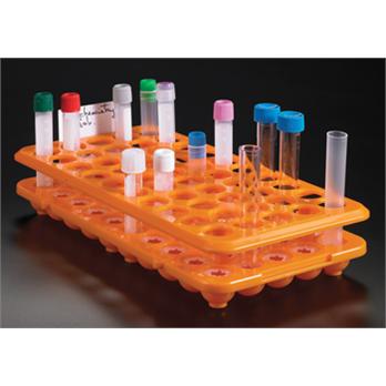 Made of high impact polystyreneThis special 50-place rack will hold your 12 x 75 mm and 13 x 100 mm tubes securely in place thanks to silicone tabs surrounding the base of each tube while in the rack. This makes it very convenient to empty tube content before discarding them. Also great for holding tubes in rack securely in place when in a water bath. Each position is alpha numerically identified. Units can be anchored laterally to one another, thanks to two screws supplied with each rack. Dimensions: 250 x 128 x 50 mm H (9 ¾ x 5 x 2 in. H).